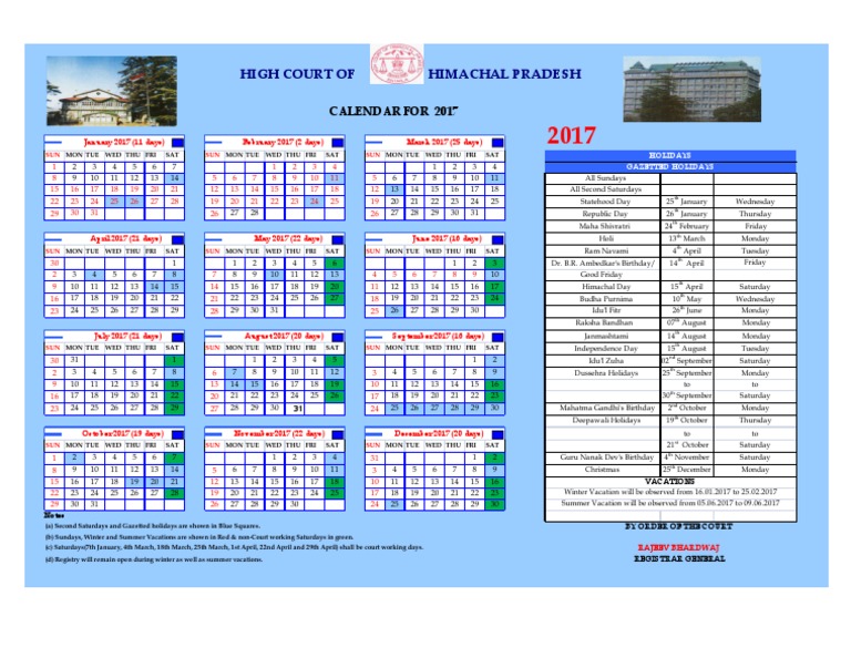 Source : www.latestlaws.comHimachal Pradesh High Court Calendar, 2017 | PDF | Public Holiday